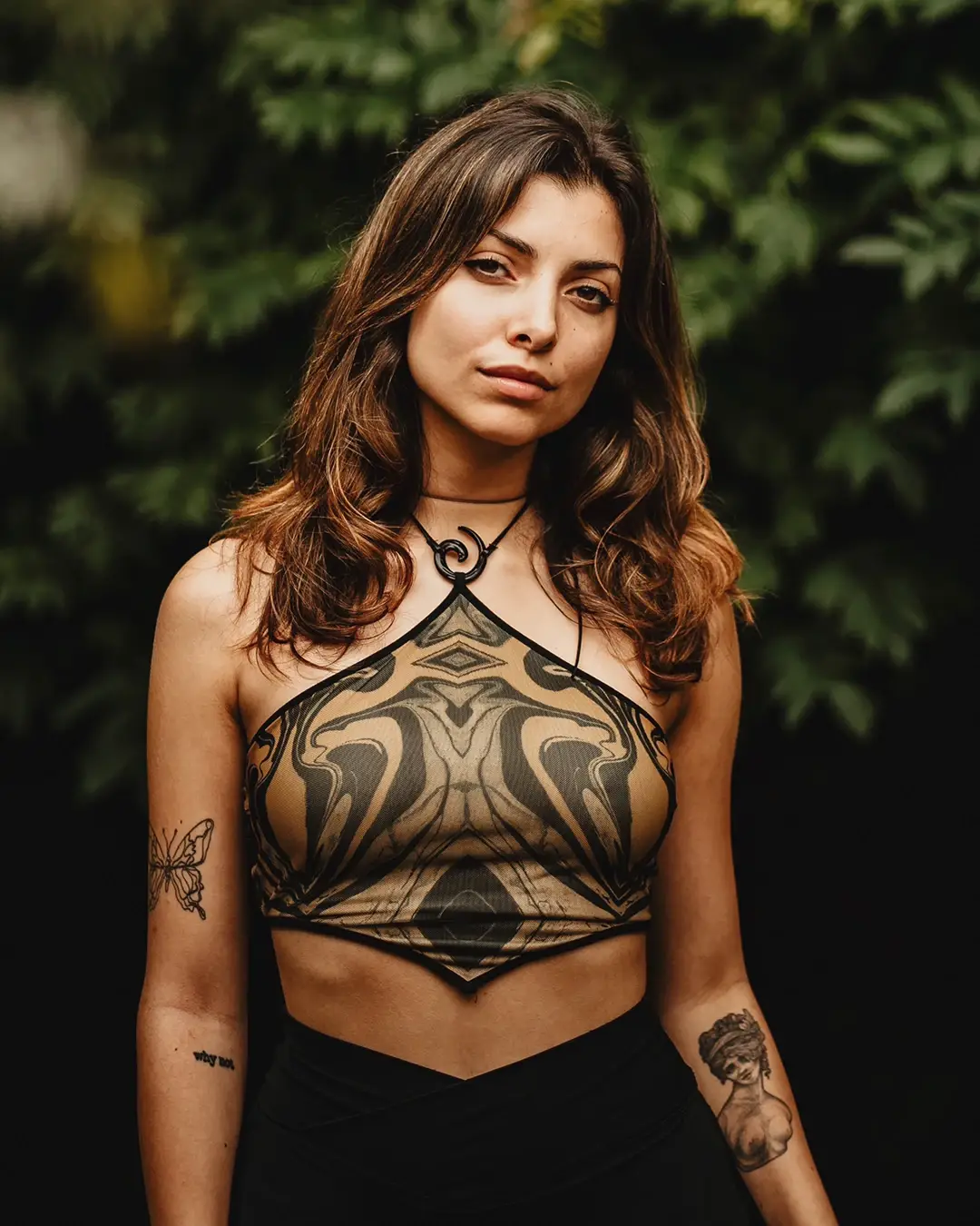 Her EP Tender Trance and debut album Fluid Meditations(2023) marked her breakthrough, combining distorted percussion, trance influences and multilingual vocals into immersive dancefloor experiences. In 2024, she released the viral hit “La Bateria” and launched her Bigroom Sensual series, reinterpreting big room aesthetics through hybrid club sounds.